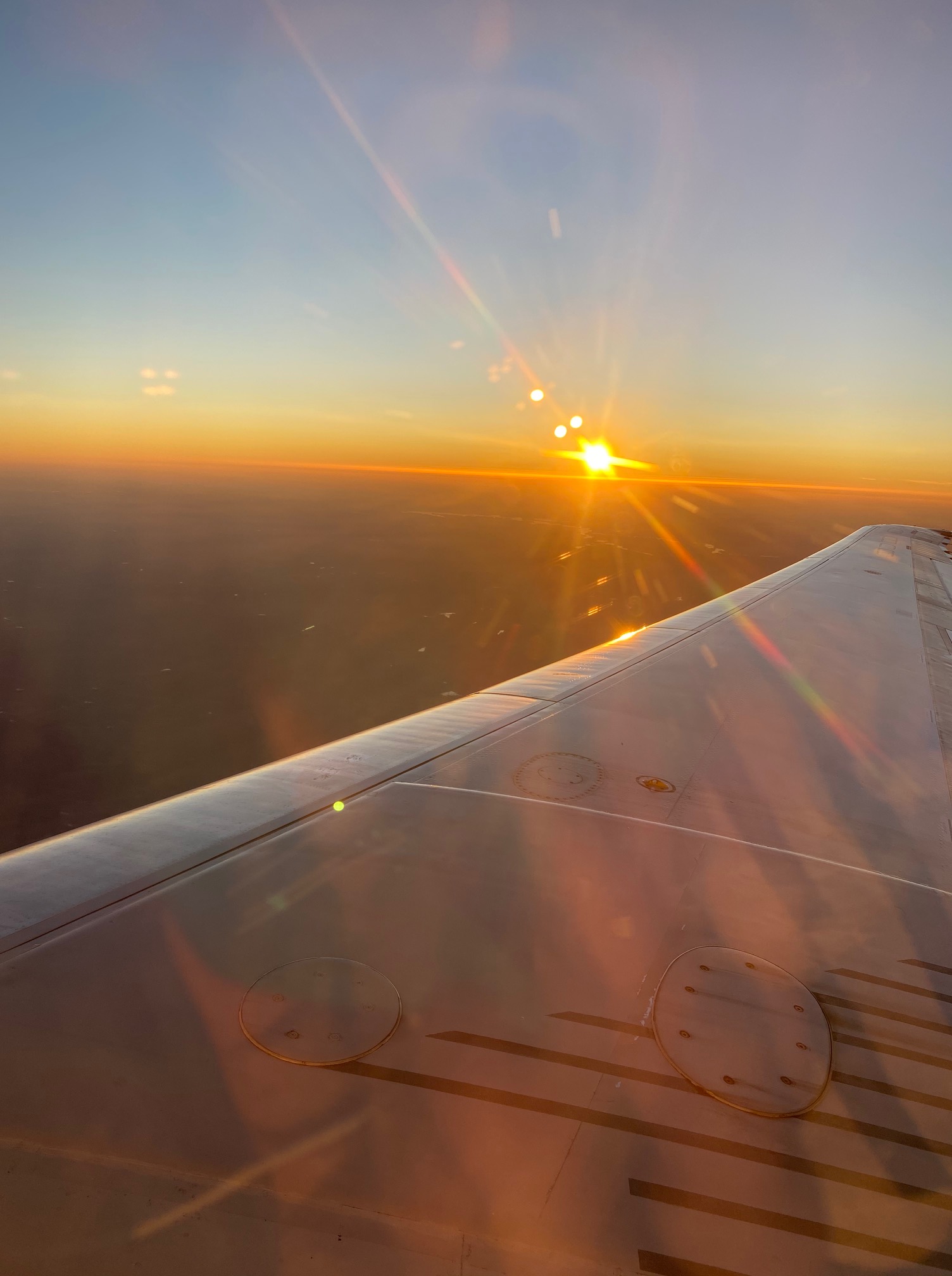 For me, personally, being required to write in a writer’s notebook is a little serendipitous, as I prepare to write my first big research paper based off of my own research. When I took the writing course as a part of my special education degree my sophomore year, I felt vastly out of my league, as I hadn’t been writing and had flat out never written anything like it before. Now, not only am I more experienced, but the writing time that I am gaining in this class is only helping me towards my comfort in writing in general. It has been such a wonderful experience to write for my own enjoyment for the first time in an incredibly long time. After reading the first section of “Textbook Amy Krouse Rosenthal”, I have found myself looking for moments of serendipity within my own life to fill my writer’s notebook with. I think that sometimes, it’s hard for us to slow down and notice the little things in life that make it seem like the universe is falling together in the right way. Reading what Rosenthal had to say on the subject of serendipity has definitely encouraged me to attempt to slow down some and notice the wonderful things that everyday life has to offer. For example, on my flight yesterday, we took of from Atlanta right as the sun had begun to set and landed right as it had finished. I was assigned to an aisle seat in an exit row (more space!!) and I got to watch the sun set through the window for the entire flight (see pictures below).